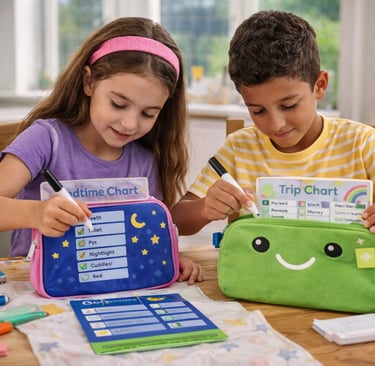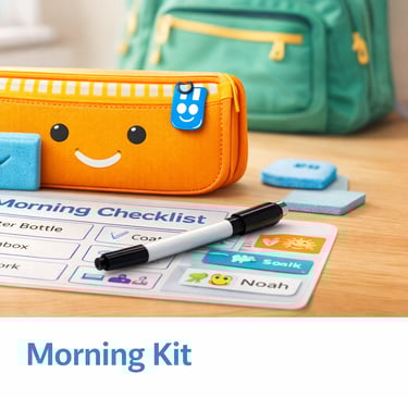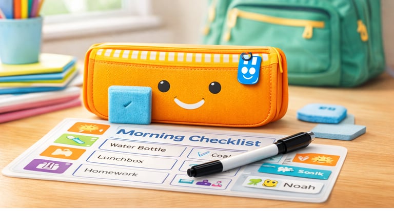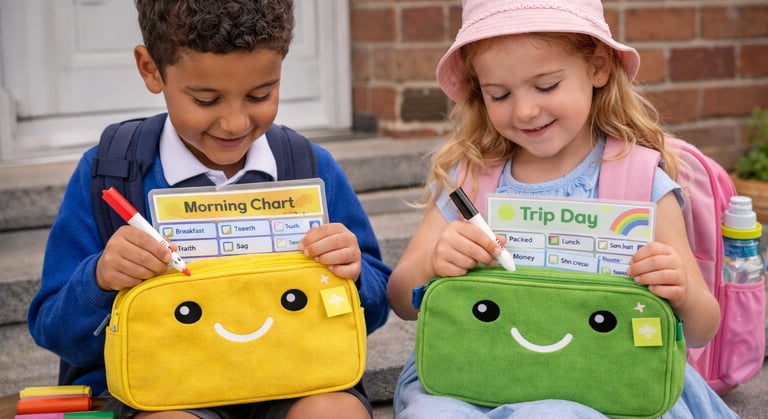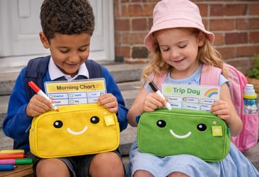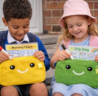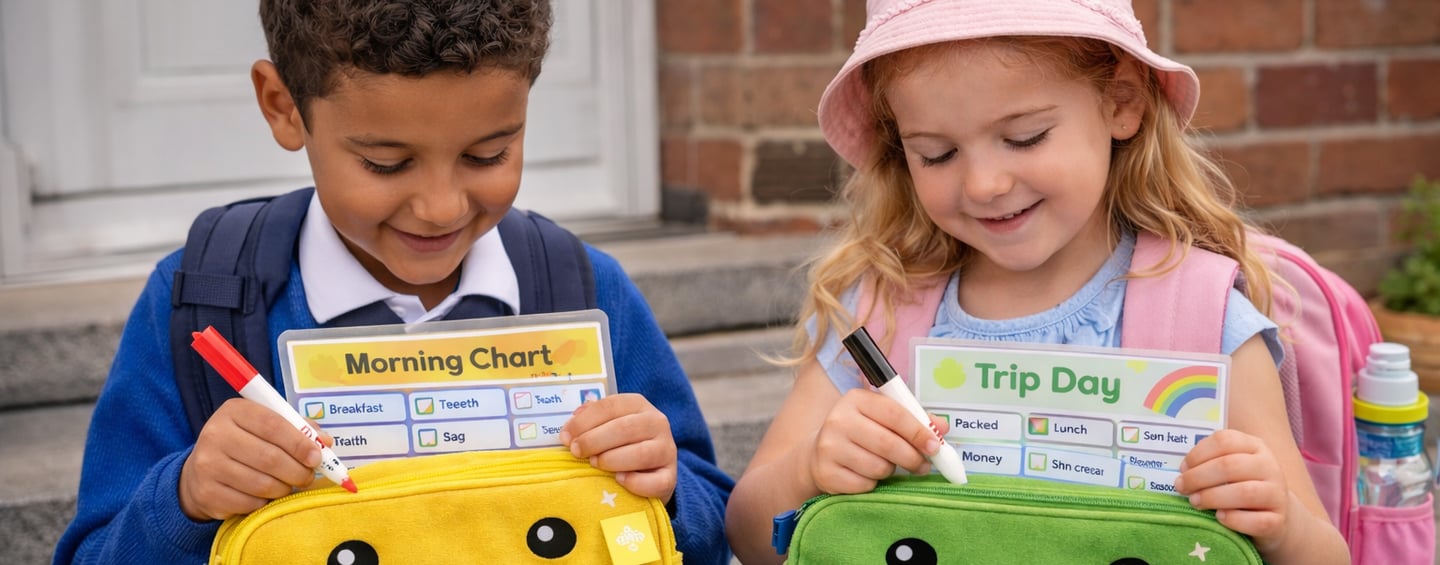 At pack n track, we make mornings easier with fun, reusable checklist kits that help children pack their school bags all by themselves.