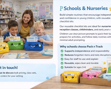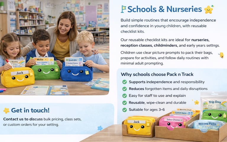 Pack n Track helps schools and nurseries build simple routines that encourage independence, confidence, and organisation in young children.